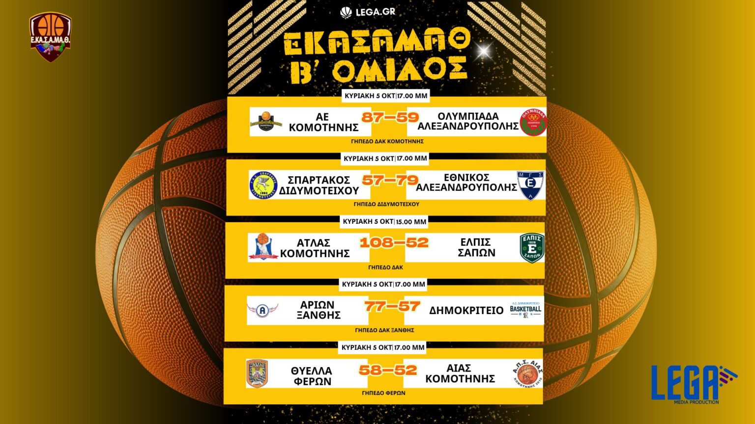 Πρεμιέρα στο πρωτάθλημα της ΕΚΑΣΑΜΑΘ και για τον β’ όμιλο έχουμε τα παρακάτω αποτελέσματα