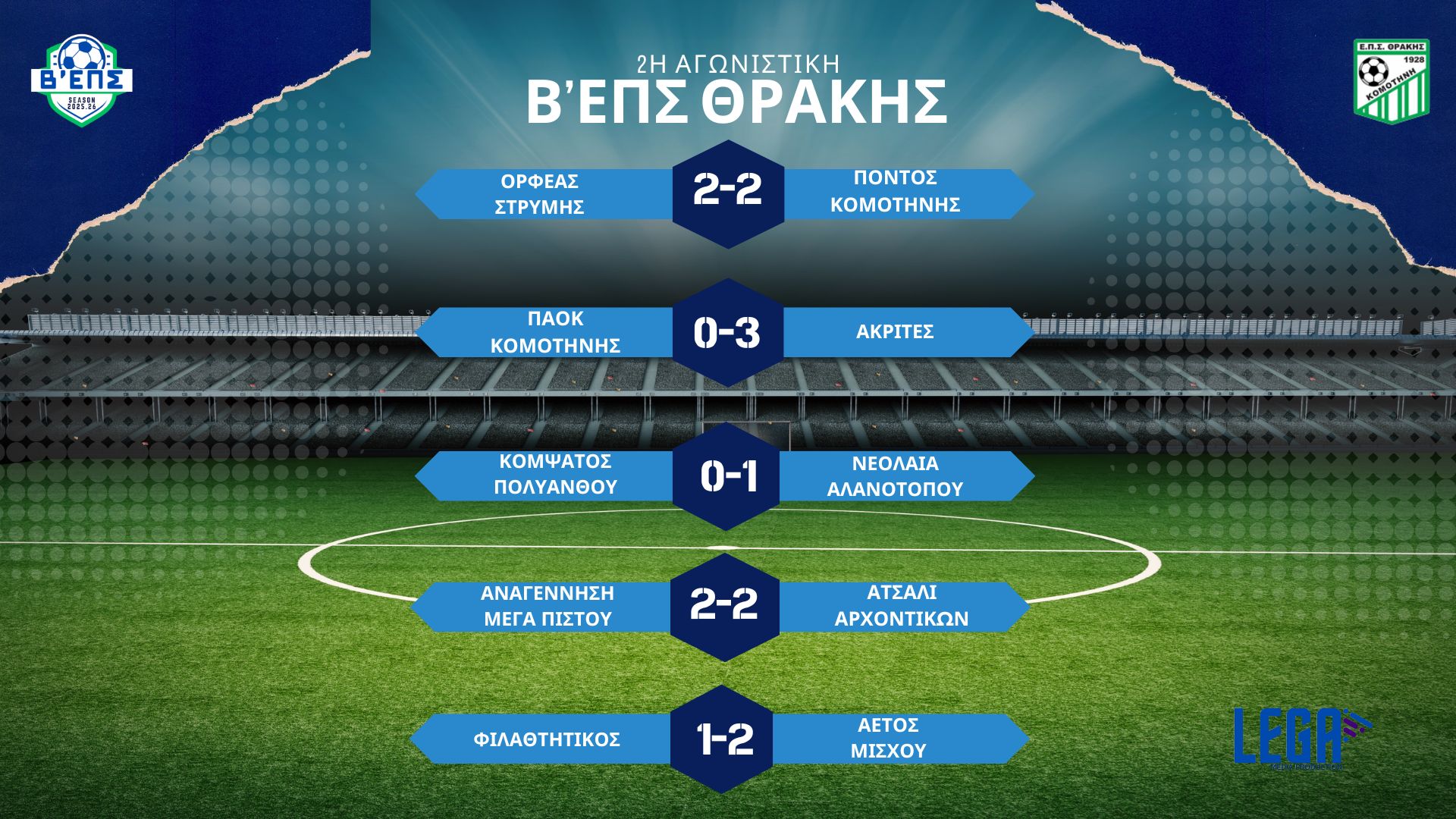 Ολοκληρώθηκε η 2η αγωνιστική για το πρωτάθλημα της Β’ Ερασιτεχνική ΕΠΣ Θράκης