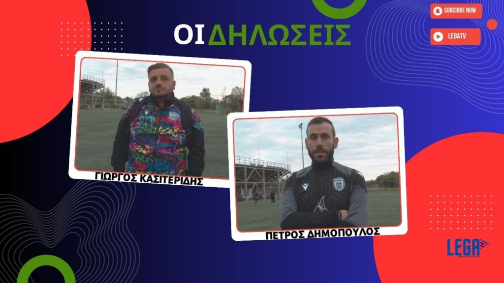 Share Facebook Email Με το τέλος του αγώνα μίλησαν στην κάμερα της legaTV οι δυο προπονητές των ομάδων, Πέτρος Δημόπουλος και Γιώργος Κασιτερίδης Ακρίτες Κομοτηνής Γιώργος Κασιτερίδης ΕΠΣ Θράκης ΠΑΟΚ Κομοτηνής Πέτρος Δημόπουλος