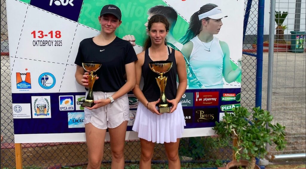 Θυμίζουμε ότι την Παρασκευή (17/10 στο διπλό των αγοριών πρωταθλητές στέφθηκαν οι Βασίλης Λυκουρέσης και ο ελληνικής καταγωγής Νικόλας Πανουσόπουλος (Ελβετία), ενώ στον τελικό των κοριτσιών Ηλιάνα Μύθη και Βασιλική Τσαντίλη κέρδισαν τον τίτλο με 7-5, 5-3 κόντρα στις Ειρήνη Μπεκιάρη και Αντωνία Παπαγαπητού που εγκατέλειψαν λίγο πριν το τέλος.