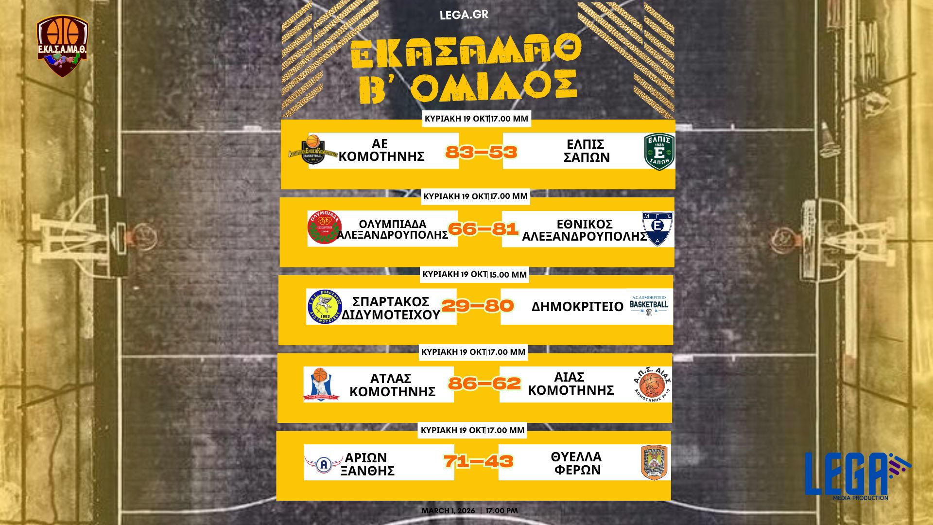 Τα αποτελέσματα της 3ης αγωνιστικής για το πρωτάθλημα της ΕΚΑΣΑΜΑΘ του Β’ ομίλου