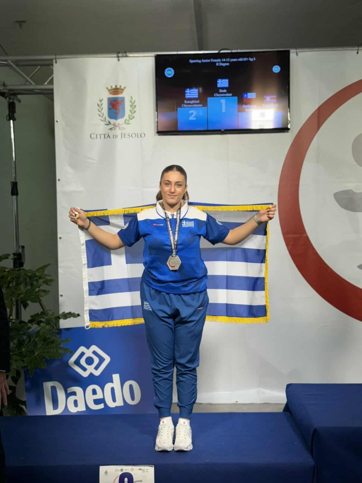 Μεγάλη διάκριση για την Επανομή και φυσικά για όλη την Ελλάδα στην οποία η 15χρονη, Χρυσοβαλάντου Καραγκιόζη, έφερε χρυσό μετάλλιο στο Παγκόσμιο Πρωτάθλημα Ταε-Κβο-Ντο που διεξήχθη στο Ιεσόλο της Ιταλίας.