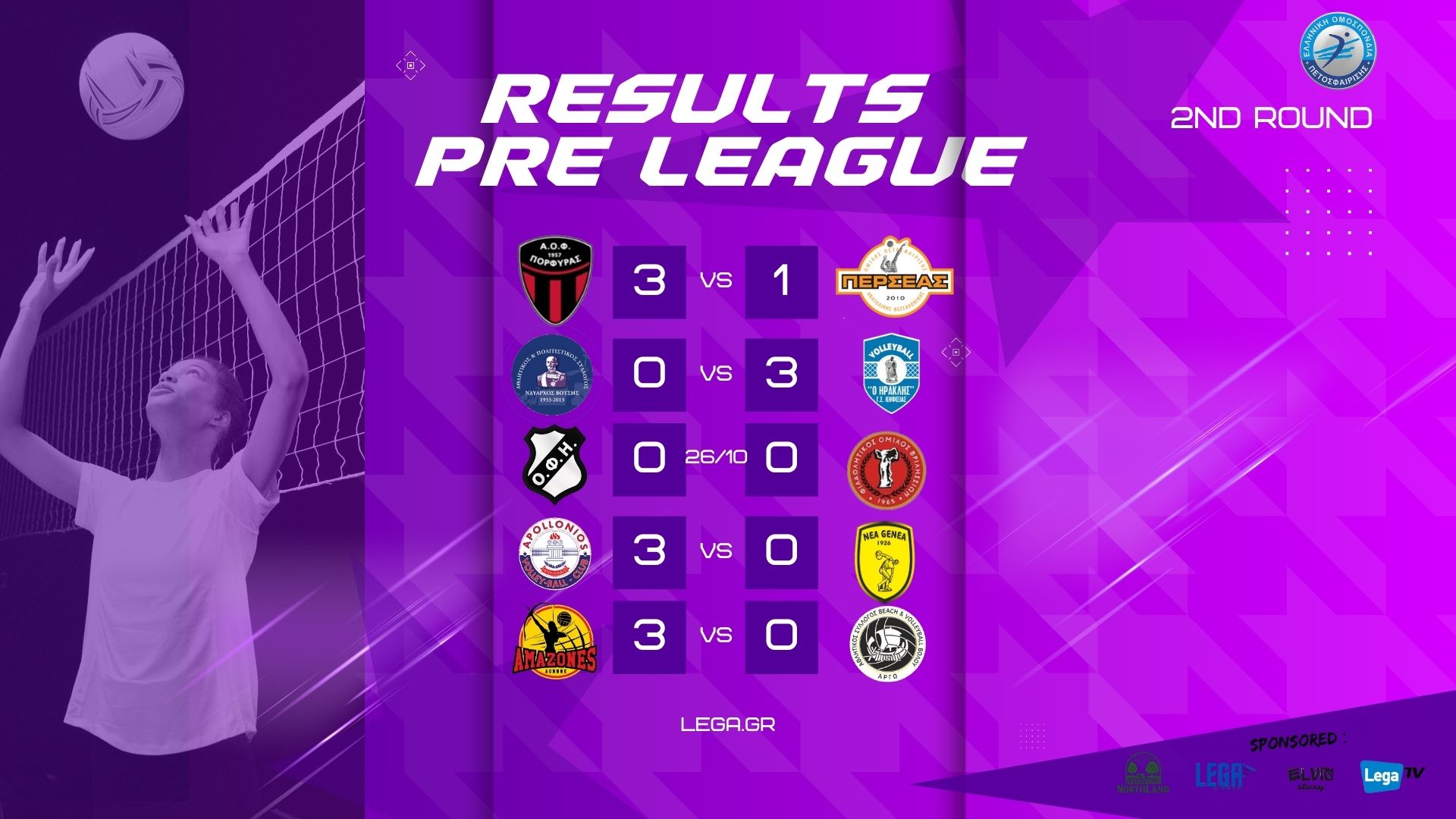 Τα αποτελέσματα για την 2η αγωνιστική της Pre League γυναικών. Απομένει το αυριανό ματς ανάμεσα στον ΟΦΗ και τα Βριλήσσια.