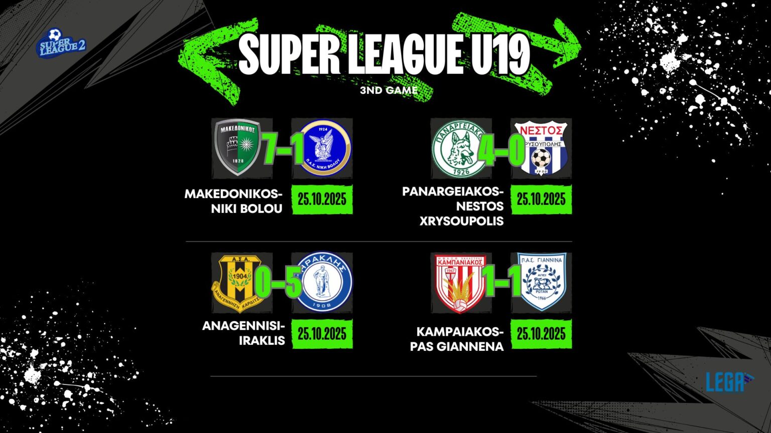 3η αγωνιστική για τις υποδομές της Super League2 u19 και είχαμε τα παρακάτω αποτελέσματα