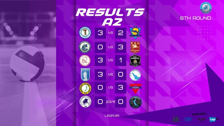 Τα αποτελέσματα για την 6η αγωνιστική του πρωταθλήματος της Α2  Volley γυναικών