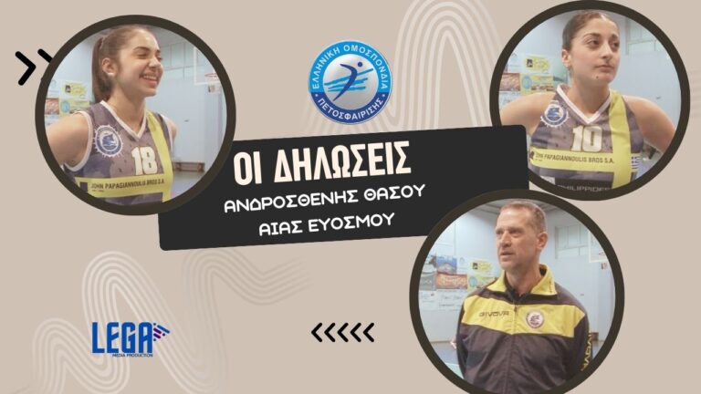 Με το τέλος του αγώνα Ανδροσθένης – Αίας, μίλησαν στην κάμερα μας ο προπονητής Γιάννης Ανδρεάδης καθώς και δυο παίκτριες. Ζειμπέκη όλγα και Κουτσίκ Βασίλογλου Άλκηστις