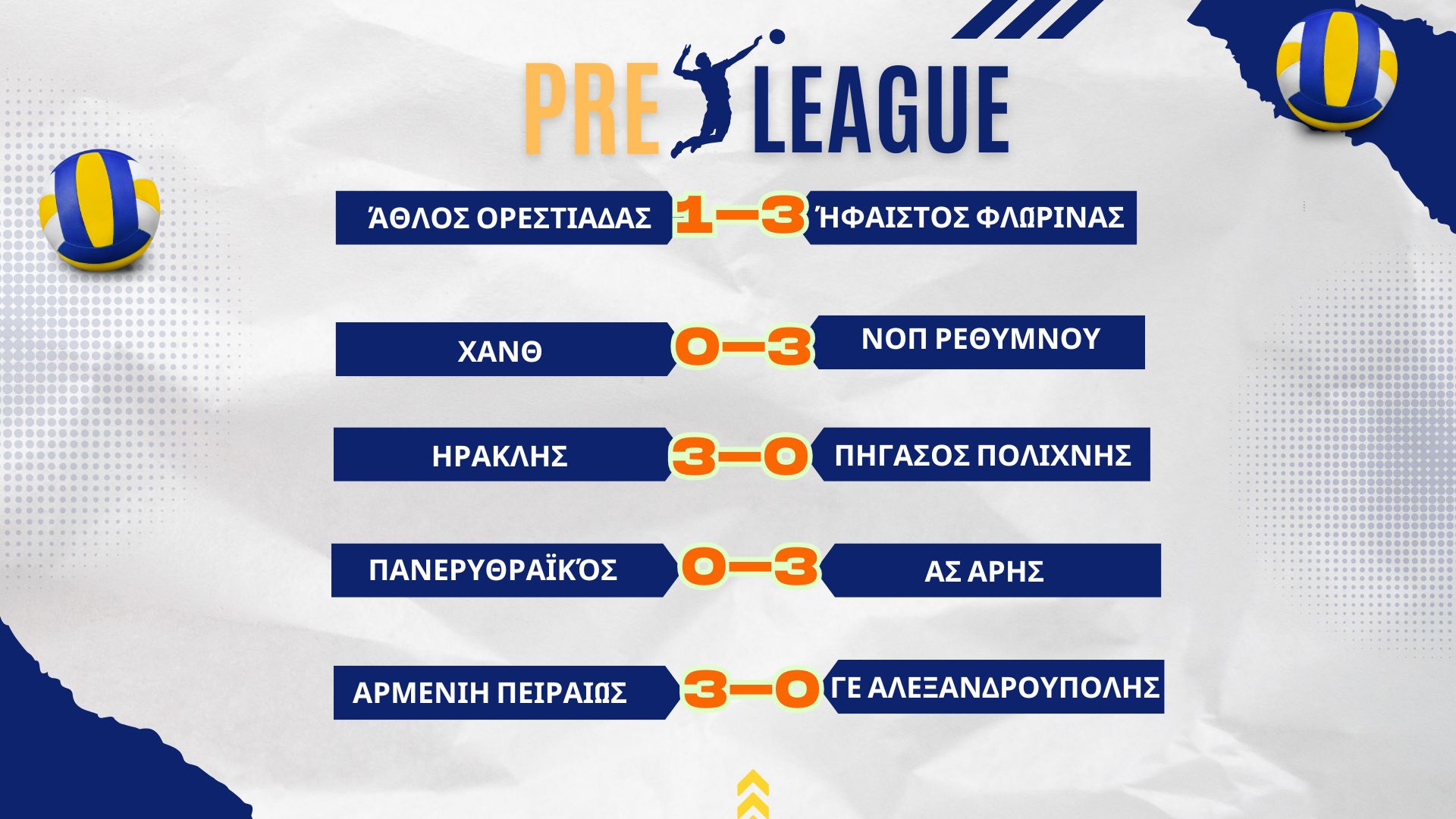 Pre League Volley Ανδρών: Τα αποτελέσματα