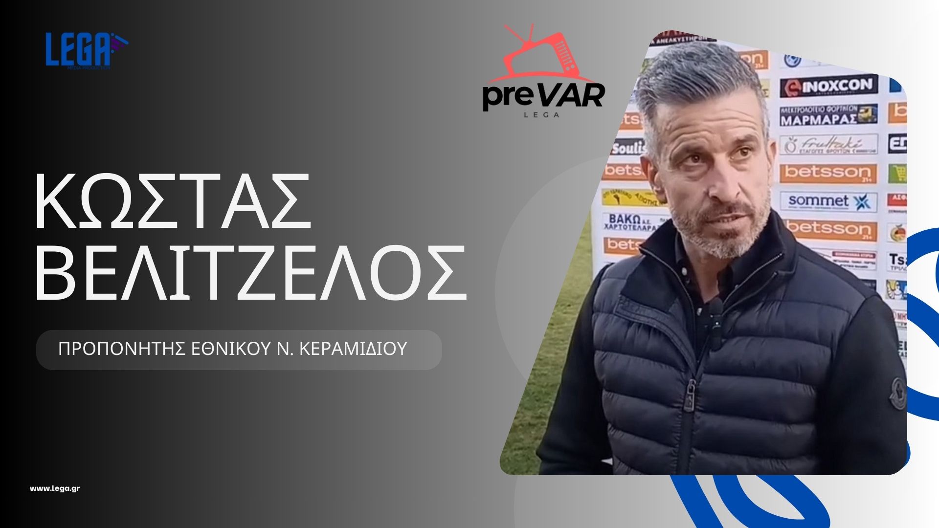 Στην εκπομπή Pre VAR φιλοξενήθηκε ο προπονητής του Εθνικού Νέου Κεραμιδίου, Κώστας Βελιτζέλος. Ο έμπειρος τεχνικός μίλησε για τη σεζόν που ολοκληρώθηκε, έκανε τον απολογισμό της πορείας της ομάδας, ενώ παράλληλα ανέλυσε και την προετοιμασία ενόψει της διαδικασίας των play off στον 2ο όμιλο. Αναφέρθηκε στις δυσκολίες της χρονιάς, στα στοιχεία που έφεραν την ομάδα μέχρι εδώ, αλλά και στους στόχους που έχουν τεθεί για τη συνέχεια της διοργάνωσης.